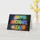 This multicolored and fun birthday greeting card design features the message "HAPPY BIRTHDAY," and the common first name "LEAH" with the letters having a colorful rainbow spectrum like gradient coloring pattern. The background of the front also features a colorful pattern inspired by the appearance of bursting celebratory fireworks. The inside features a personalized greeting message, or could perhaps be cleared and left blank if a message is to be written by hand instead. A greeting card like this could be a fun way to celebrate the birthday of somebody named Leah. [~Z0000350]