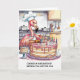 "Cooked up a big batch of birthday fun just for you!" Chef Flamingo says. A flamingo wearing an apron and chef's hat is preparing to slice a giant layered cake covered in pink and blue birthday candles. A whimsical birthday card for all ages of flamingo lovers sure to make both recipient and party guests smile.