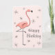 Tarjeta Flamingo Pink Happy Birday front texto vertical