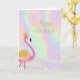 Tarjeta Flamingos rosados Corazones Holográficos Cumpleaño