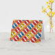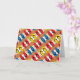Nada dice en verano como un par de fabulosos chanclas. El caprichoso patrón que embellece esta tarjeta los presenta en tonos primarios de rojo, azul y amarillo alineados contra rayas de color arena vagamente tejidas.