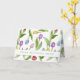 El diseño del producto presenta un patrón de flores de tulipán coloridas en morado, rojo, rosa, azul y amarillo. Este ilustracion botánico con texto personalizado hace una elegante tarjeta de felicitación moderna y única.