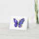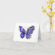 Joyería, azul, zafiro, mariposa floral brillante con ala decorada con flores azules y preciosas con hojas de oro sobre fondo blanco.