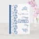 Una tarjeta de felicitación del Día de la Madre muy bonito para una suegra, con un borde floral azul índigo en la portada y un motivo similar en el interior, donde también se puede personalizar el mensaje. Este diseño forma parte de la colección Posh y Painterly 'Indigo' y se puede ajustar fácilmente para que se ajuste a cualquier tamaño de tarjeta.