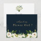 Un hermoso diseño de vegetación de verano con flores blancas marfil y fondo azul oscuro. El texto y los colores se pueden personalizar.