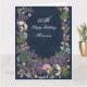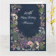 Tarjeta Floral botánica de cumpleaños en azul de la marina
