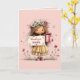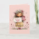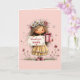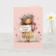This sweet Mother’s Day card features an adorable illustrated child wearing a daisy flower crown and holding a pink gift box alongside a soft “thank you mom” sign. Surrounded by whimsical flowers and buzzing bees, the design radiates warmth, gratitude, and springtime charm. Inside, a tender poem is printed to complete the message: