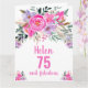 Elegante tarjeta de cumpleaños número 75 con un diseño floral de acuarela rosa. Personalice con su nombre y texto.