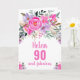 Elegante tarjeta de cumpleaños número 90 con un diseño floral de acuarela rosa. Personaliza con tu nombre y texto.