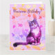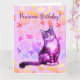 Tarjeta floral de gato gris de pelo largo