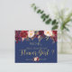 Tarjeta ¿Quieres ser mi dama de las flores? con diseño floral en burgundy, azul marino y marsala. Perfecta para tu boda romántica de otoño e invierno.