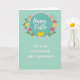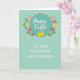 Designed with a circular badge near the top, this Easter greeting card features a thin pink ring around a soft teal center where the words “Happy Easter” appear in flowing white lettering. Around the circle, a loose wreath of simple spring botanicals wraps in a friendly embrace, with pink and yellow blossoms, green leaves, and small orange curls that feel like they’re reaching toward one another 🌷. Two small yellow egg shapes sit tucked at the bottom of the circle, side by side like a cozy pair. The background is a smooth mint green that keeps everything calm and airy, letting the colors mingle gently. Beneath the main artwork, the message “TO OUR GRANDMA AND GRANDPA” is set in white, all-cap letters centered across the lower area. The spacing between the top greeting and the lower message leaves room for the eye to travel, like a quiet pause between loved ones. Tiny leaf tips and petal shapes curve around the wreath, and the eggs rest just under the teal circle like little suns 🐰.