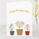 Brilla el día especial de la mamá con esta encantadora tarjeta Happy Birthday Mom con un diseño moderno y minimalista de tres coloridas macetas de plantas. Perfecto para los amantes de las plantas y madres con un pulgar verde, esta carta es una manera dulce de mostrar su apreciación. El diseño frontal es lúdico y cálido, mientras que el interior incluye un sentido mensaje de cumpleaños — una hermosa manera de recordarle cuánto significa para usted. Esta tarjeta de cumpleaños de mamá combina el diseño divertido con un sentimiento genuino, lo que lo hace una elección perfecta para hijas, hijos o cualquiera que celebre una madre maravillosa. Ya sea que busques una tarjeta de cumpleaños linda para mamá, una tarjeta de saludo con temática vegetal, o algo reflexivo y único, esta linda tarjeta de cumpleaños la hará sonreír.