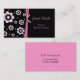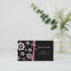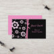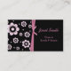 Tarjeta de visita de encargo elegante de la mamá hecha con un fondo negro, en el frente, con las plantillas rosadas de moda de la flor, en el lado izquierdo. Un arco doble del rosa de la cinta separa las flores, a la izquierda, del área de texto negra sólida, en el derecho, con el texto de la aguamarina. La parte posterior de la tarjeta es aquamarine sólido, con el texto negro. Personalice todo el texto, en el frente y la parte posterior, para adaptarse a sus necesidades. Grande para arreglar el juego fecha con otras mamáes.