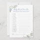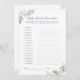 Respuestas: 1. Diaper 2. Frasco 3. Cuna 4. Pacificador 5. Matrícula 6. Reproducir 7. Trasplante 8. Batalla 9. Diez. Canción de cuna 11. Enfermería 12. Cucharas 13. Fórmula 14. Swaddle 15. Booties Blue floral "Baby Word Scramble" tarjeta de juegos para bebé descargable con un impresionante diseño floral acuático con suaves y delicadas flores azules y blancas polvorientas pastel, como la hidrangea. El divertido tipo de letra manuscrita le aporta un toque vintage encantador al diseño y complementa perfectamente los florales.