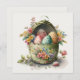 Cuta acuarela Tarjeta de Pascua con huevos y flores de colores.