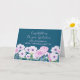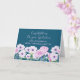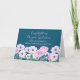 Felicidades por tu tarjeta de graduación para la bisnieta con hermosas flores azul turquesa y morado, y verso sentimental.