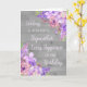 Tarjeta de cumpleaños para feliz cumpleaños de madrastra con flores de color morado, patrón rústico de madera gris y verso reflexivo.
