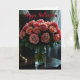 Un magnífico jarrón de tus rosas rojas favoritas sobre una mesa vintage con cráneos blancos ocultos. Añade tu mensaje dentro del mismo tipo de letra.