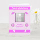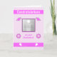 Tarjeta fotográfica con mi diseño rosa de flores sonrientes, gorras y globos.