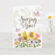 La tarjeta de bienvenida de las escrituras inspiradoras de Amazing Grace representa un hermoso diseño de jardín floral de acuarela que incluye girasoles amarillos, flores praderas rosas y naranjas y mariposas. Presenta el querido mensaje cristiano de la Increíble Gracia de Dios. La Biblia interior Verse a los filipinos 1:2-3, "Gracia y paz para vosotros de parte de Dios nuestro Padre y del Señor Jesucristo. Le doy las gracias a mi Dios cada vez que te recuerdo". *