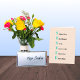Una tarjeta especial de cumpleaños para tu hermana, porque es de apoyo, inteligente, dulce, confiable, envolvente, refrescante. El saludo en el interior es personalizable, o puedes llevar el "Feliz Cumpleaños" sugerido "a una Hermana muy especial". El fondo de la carta es un patrón de flores blancas sobre un fondo de melocotón, y hay otras tres flores de melocotón en el interior de la cubierta delantera.
