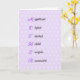 Una tarjeta especial de cumpleaños para tu madre, porque es Magnífica, Original, Talentosa, Útil, Enérgica, Resorcida. El saludo dentro es personalizable, o puedes mantener el "Feliz Cumpleaños" sugerido "a una madre muy especial". El fondo de la carta es un patrón de flores blancas sobre un fondo violeta, y hay tres flores violetas más en la parte delantera.