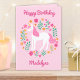 Este diseño de tarjeta de cumpleaños unicornio presenta un bonito diseño de unicornio rosa con flores naranjas y rosas y un falso purpurina de oro. Personalice la parte delantera con un nombre y el mensaje dentro de la tarjeta con su propio texto o elimínelo para una tarjeta en blanco.