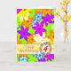 Una tarjeta de aniversario de boda para regalar a quien amas. Flores fabulosas de 'op art' en colores brillantes. Una tarjeta vibrante que dice '¡FELIZ!'. Las flores multicolores están desparramadas sobre un fondo verde. La tarjeta se deja en blanco para usar como tarjeta de nota o para tu propio mensaje. Ver toda la gama de tarjetas en mi tienda. Todos los derechos de autor del arte por Norma Cornes.