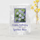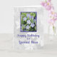 Desee una monja feliz cumpleaños con esta tarjeta de bonito. El aspecto natural fresco con las flores violetas es luminoso frente a la misma imagen, pero en tonos suaves en blanco y negro, añadiendo mucha dimensión a la tarjeta.