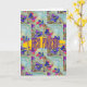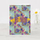 Tarjeta Flores moradas y azules cuadrados Zigzags