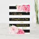Tarjeta del Día de la Madre para nuera con rayas negras, flores de acuarela rosadas y verso sentimental.