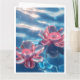 Tarjeta Flores rosa de Lotus flotando en agua azul cristal