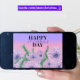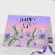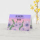 Tarjeta Flores Rosadas Purpúreas y Hojas Verdes Día de la