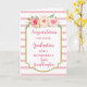 Felicidades por tu tarjeta de graduación para la bisnieta con hermosas flores color de agua rosada, patrones de rayas rosas y blancas y verso sentimental.