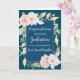 Felicidades por tu tarjeta de graduación para la bisnieta con hermosas flores de color rosa de agua, y verso sentimental.