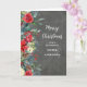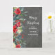 Feliz Navidad para la hermana y su tarjeta familiar con diseño rústico de campo, patrón vintage de pizarra y follaje de invierno con poinsettias.