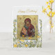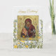 Un campo de flores silvestres amarillas y azules con un ícono de la tarjeta de cumpleaños de Theotokos y Cristo Ortodoxo Cristiano. Personalizar con todos sus datos personales y preferencias.