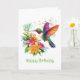 Tarjeta Flores tropicales de Hummingbird Feliz Cumpleaños