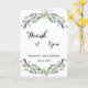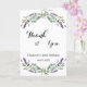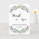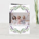 Un fondo blanco, decorado con lavanda, flores violetas y vegetación eucaliptica. Interior: 1ª de sus fotos, tamaño vertical. Página en blanco para que escribas a mano. (esta tarjeta también está disponible con texto prehecho y su firma) Atrás: 2º de Sus fotos, tamaño de paisaje.