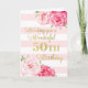 Tarjeta Flores y rayas rosadas Feliz 50 cumpleaños con tar