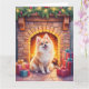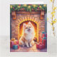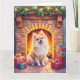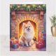 Tarjeta Fluffy Pomeranian Cozy Christmas Fireplace Dog Art
