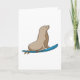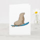 Tarjeta Foca como surfista con tabla de surf