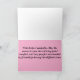 This sympathy card in landscape format introduces a photo of a purple lacecap hydrangea on the cover. The card is folded in horizontal format; the inside color is pink and the card expresses sympathy for loss.