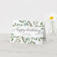 Esta tarjeta botánica de moda Happy Birthday presenta un marco de abundantes hojas de color verde acuático y algunas bayas diminutas sobre un fondo blanco limpio. Las palabras "feliz cumpleaños" aparecen en una caligrafía elegante y rápida. ¡Un saludo sencillo y elegante que le enviaremos con orgullo a cualquiera en su día especial!