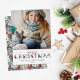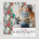 Adorne los pasillos con follaje navideño tradicional para sus tarjetas de fotos personalizadas de vacaciones! Las brillantes poinsettias rojas, las bayas de acebo y las piñas dan un toque colorido de bosque con un estilo de acuarela elegantemente rústico. Este diseño clásico de Navidad presenta dulces acentos florales que adornan cada letra, combinados con una fuente de escritura juguetona. El patrón de follaje complementario coordina perfectamente el dorso de la tarjeta.