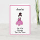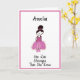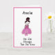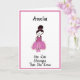 Tarjeta de aliento y aumento del cáncer de mama con un chica con una falda llena de cintas rosas
