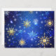 Tarjeta Fondo azul de NAVIDAD con copos de nieve dorados