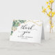 Esta es una hermosa tarjeta de agradecimiento con flor de eucalipto y diseño geométrico de forma dorada.