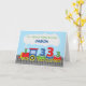 Podemos ver un tren colorido corriendo en su pista en la parte delantera de esta tarjeta que se puede personalizar con el nombre del celebrante. En esta carta sería tu querido hermano adoptivo quien lo es. ¡Así que llévale esta tarjeta hoy!